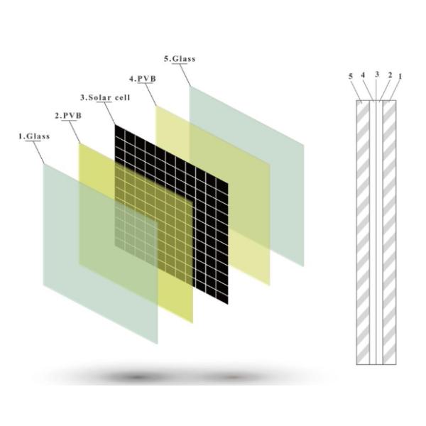 Made of two or more sheets of tempered glass and photovoltaic PVB , with a excellent impact resistance , durability , light transmittance and security .